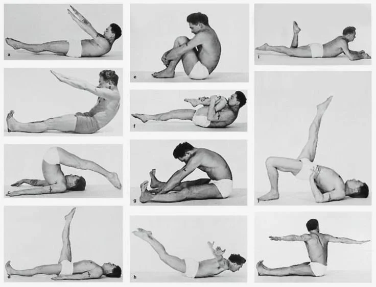 Pilates was already well-versed in using bodyweight workouts and calisthenics like movement to maintain his health and strength. Being placed in a detention center forced him to continue his dedication to studying human movement science and testing the methods on himself while under constraint. He devised the 34 mat work movements as something that can and should be done by anyone everywhere daily as a kind of bodyweight maintenance routine to maintain posture, alignment, mobility, and muscle tone.