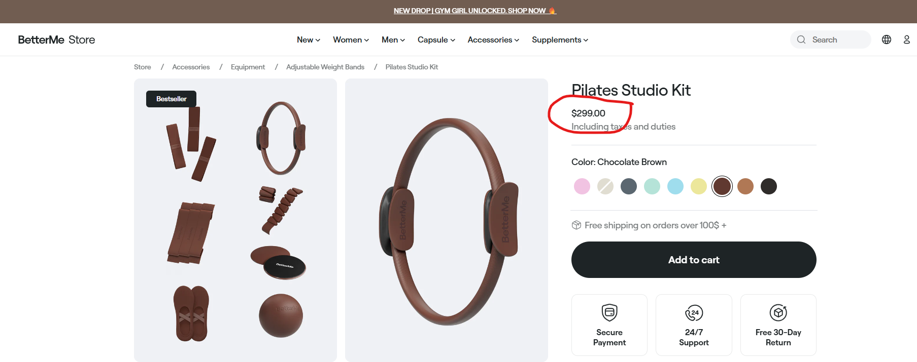 Case in point: those BetterMe Pilates kits that include a set of bands and mini bands, with grip socks, a magic circle, and ankle weights. They look cute until you look at the price. $299! Ugh. All of that stuff at Marshalls TOPS would cost $90 to acquire. And the only thing in there that is specific to Pilates is the ring. And even spending $90 on fitness accessories you might not even use or like is a lot of money to ask most working people to outlay before starting a new program.